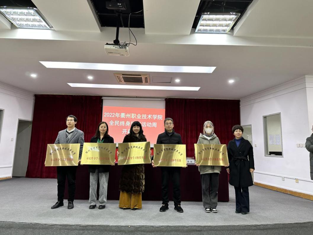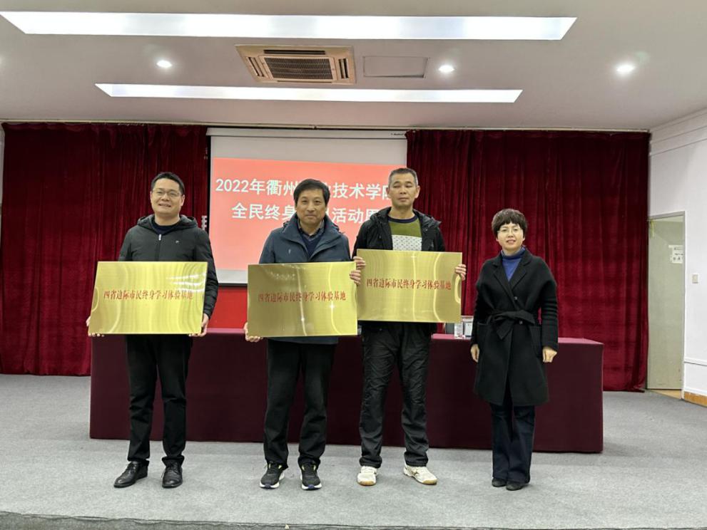 徐浪静为艺术设计学院、医学院、文化旅游学院授“四省边际市民终身学习体验基地”牌,为团委、机电工程学院、信息工程学院、经济管理学院、继续教育学院授“衢州市智慧新城老年大学市民终身学习体验基地”牌。