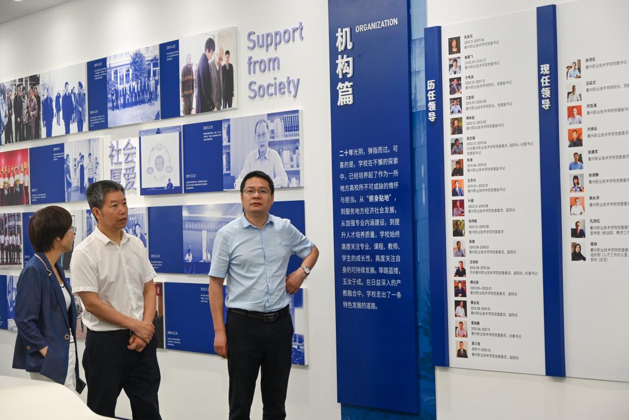 揭牌仪式后,蓝红星一行实地查看了我校共富学院展示厅、衢州市退役军人学院(退役军人服务站),详细了解了我校退役大学生士兵职业技能培训、学历提升教育、就业创业政策等方面情况。