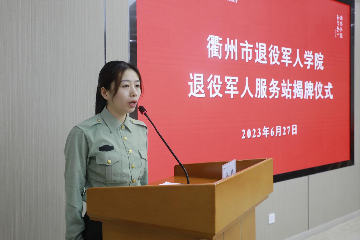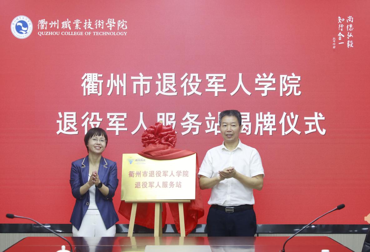 6月27日上午,衢州市退役军人学院(退役军人服务站)揭牌仪式在衢州职业技术学院举行,衢州职业技术学院党委委员、副校长徐浪静、衢州市退役军人学院党组成员、副局长蓝红星,衢州市退役军人事务局相关处室、我校继续教育学院、学工部、退役军人服务站负责人出席本次活动。